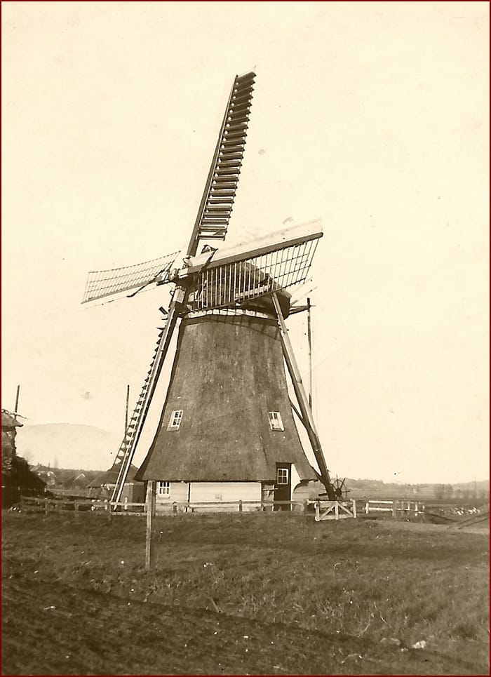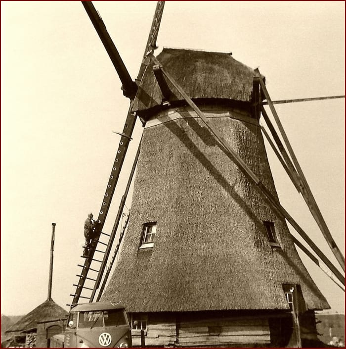 Begonnen met houten wieken? Toen een keer metalen geklonken Pot-roeden gestoken met zelfzwichting? Daarna vervangen (1965?) door stalen wieken met opnieuw oud-Hollands?